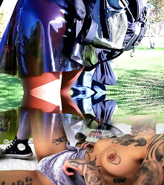 Hottest buddies Goldie Glock and Maya Farrell get taken to the back apartment by security officer Wrex Oliver after he suspects them stealing some merchandise.