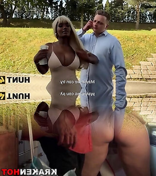 Luxury blonde ebony works stranger's cock for currency as her cuck watches