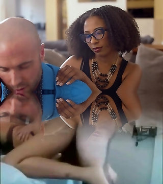 Innate boobs ebony cutie Jenna Foxx enjoys getting fucked on the sofa