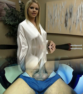 Nurse in dark-hued pantyhose wanks him off on her gorgeous legs