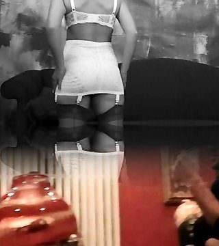 Black bodysuit, panties in pussy, nylons and erotica