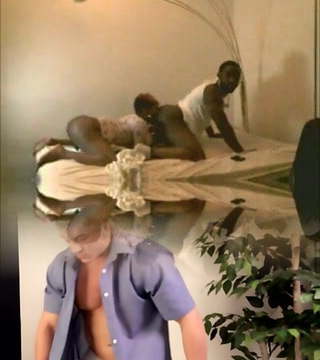 Seductive, Caucasian babe is wearing sandals with high heels while having lovemaking with a black man