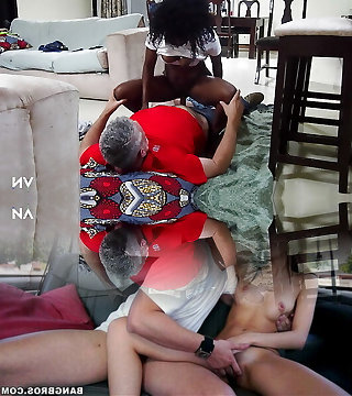 Huge dark-hued ass lesbians eat each others big lip honeypots on a couch