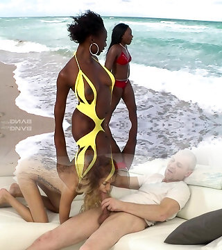 Busty bikini granny gargles and fucks the black cock