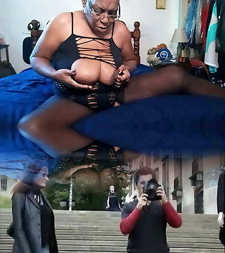 Hot black milf got caught masturbating - black pornography