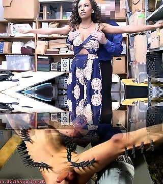 Hottest buddies Goldie Glock and Maya Farrell get taken to the back apartment by security officer Wrex Oliver after he suspects them stealing some merchandise.