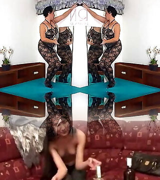 Slutty wife in black underpants and horny underwear stripteases in all black horny lingerie and stocking