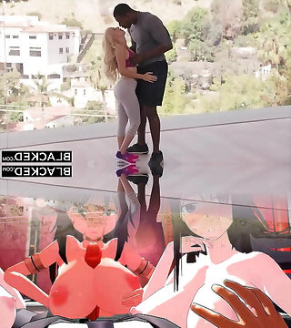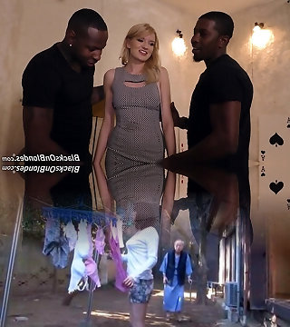 Amorous trio with Skyy Black a bitch with enormous fun bags and brunette loves to be satisfied in the pussy by two black cocks