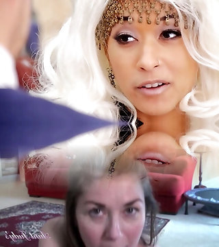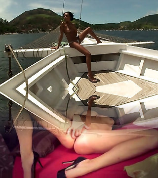 Amorous trio with Skyy Black a bitch with enormous fun bags and brunette loves to be satisfied in the pussy by two black cocks