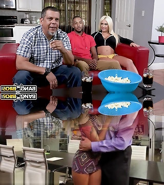 Cheating dude watches horny slut Cory Chase riding a black dick