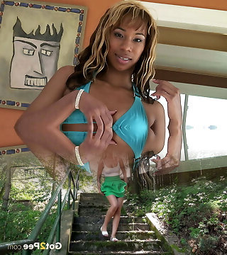 Nice cute coloured woman enjoys screwing her cooter in the room with glassy soffit