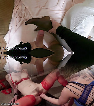 Curious Goddess hoe blonde wife cheating husband dressed as a bunny hairy twat munching and fucking Black cock