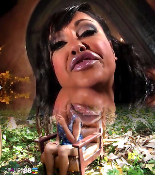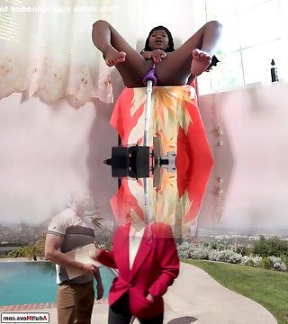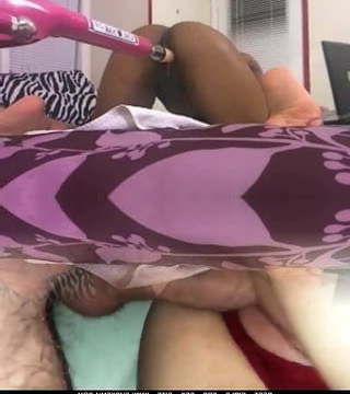 Crazy ebony slut with an awesome oiled bubble butt gets the ultimate pleasure being pummeled by a bang-out machine