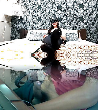 Slutty wife in black underpants and horny underwear stripteases in all black horny lingerie and stocking
