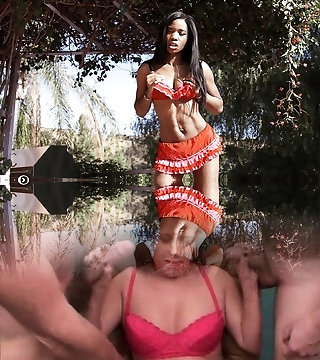 A crowd of black males enjoys dual anal penetration and arrange a gangbang for this hotty.