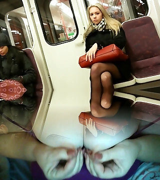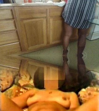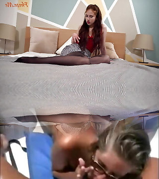In stockings without panties sexy blonde Milf is cleaning guest room for Christmas. Pussy, cunt, ass, butt, natural breasts Milf